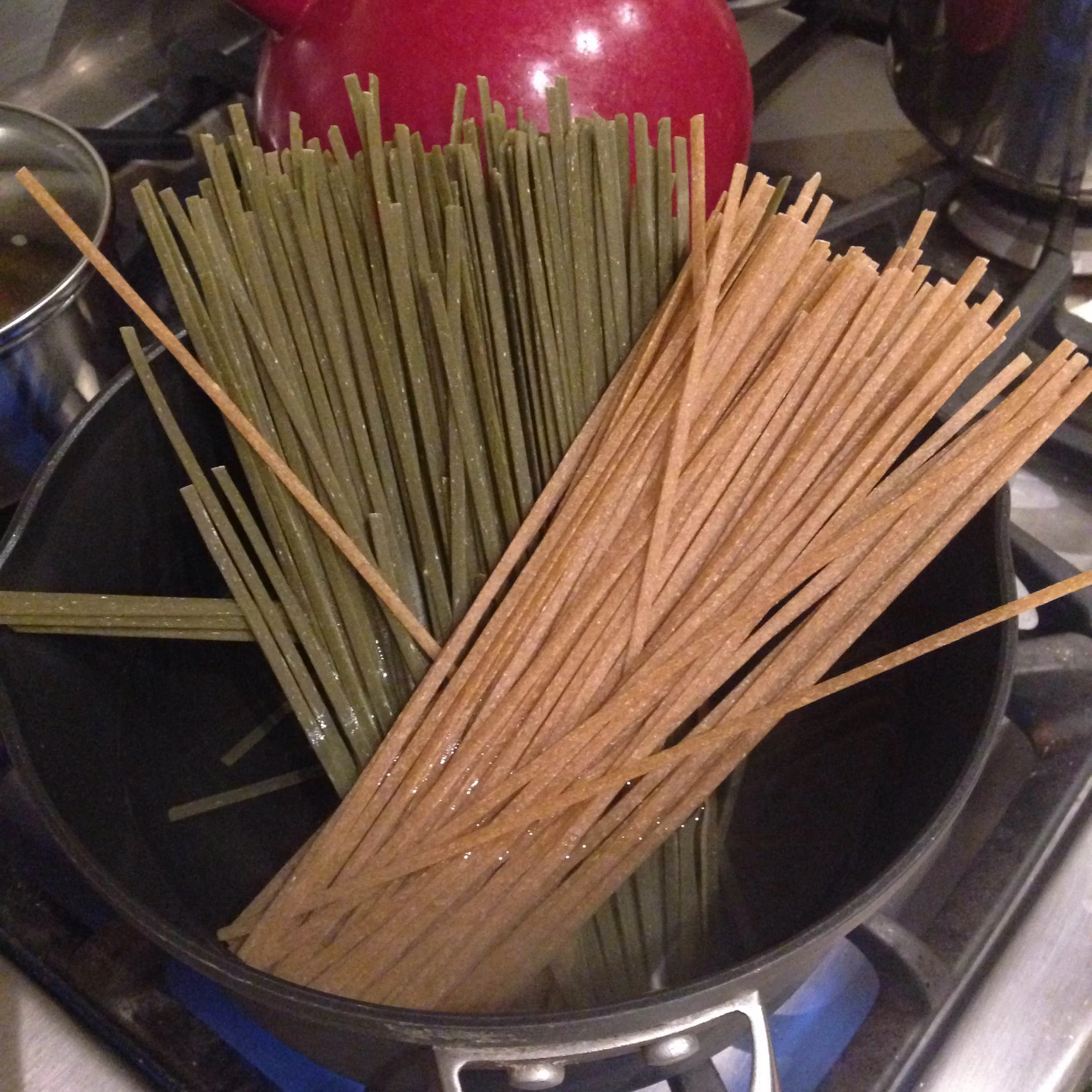 - 12oz fettuccini or linguini Pasta ( I used fettuccini because they did not have organic linguini. Plus I mixed spinach and whole grain because I can and it adds some color)